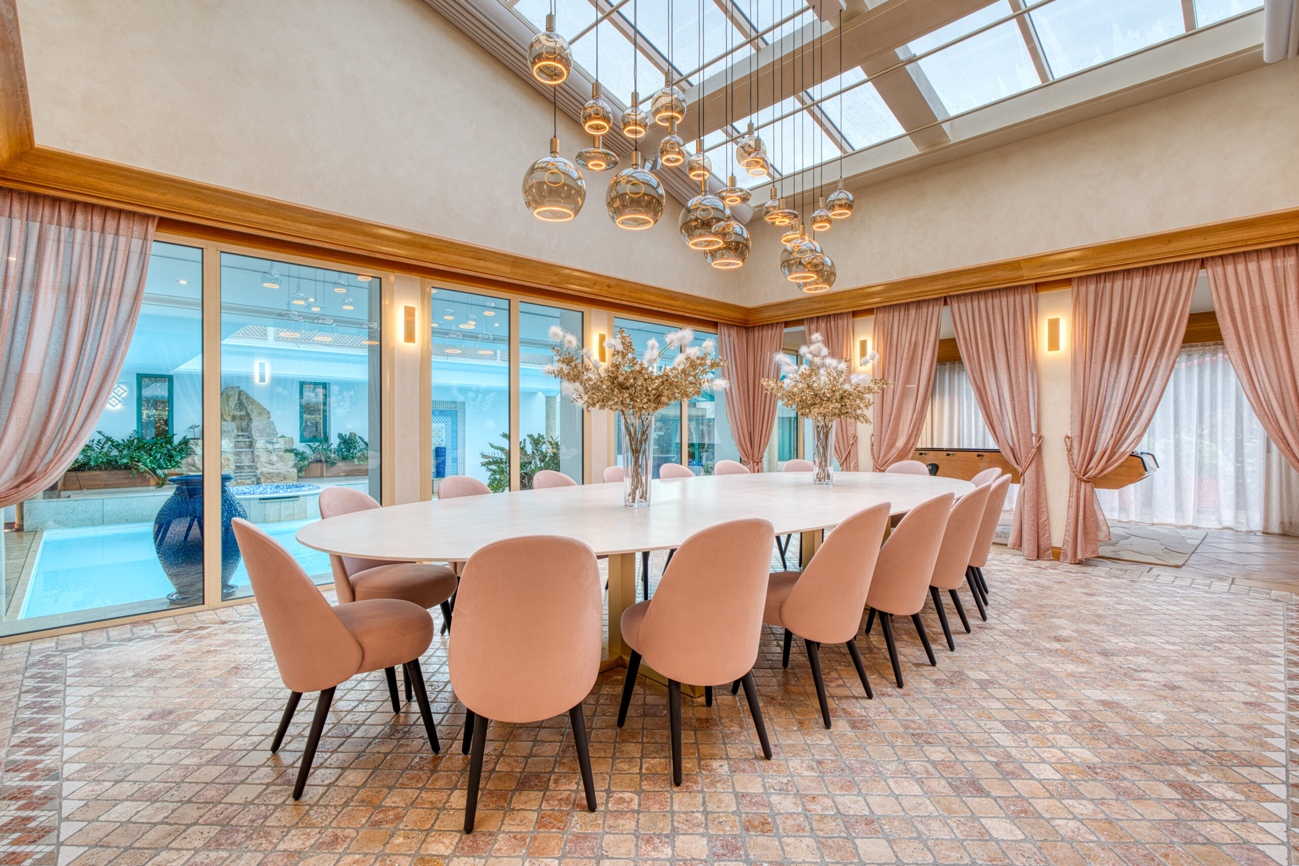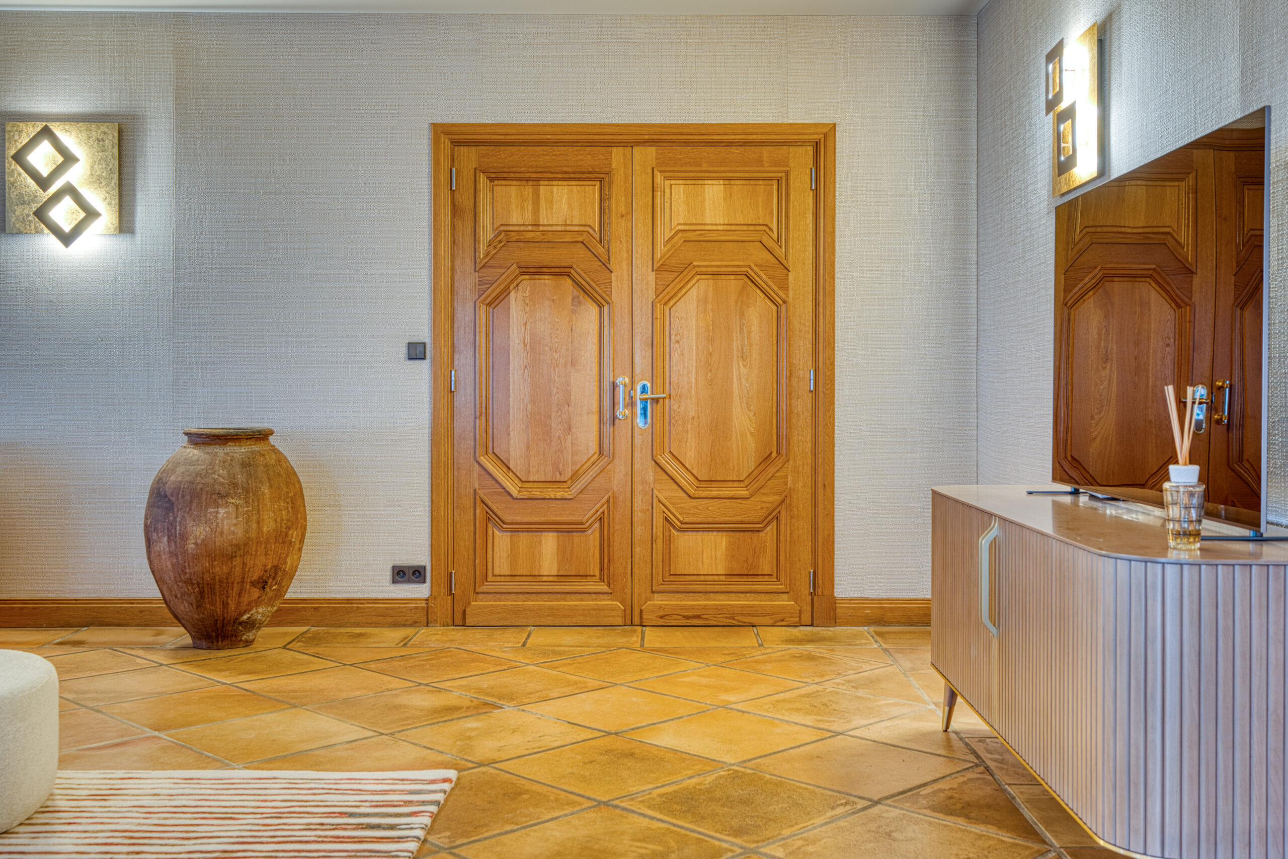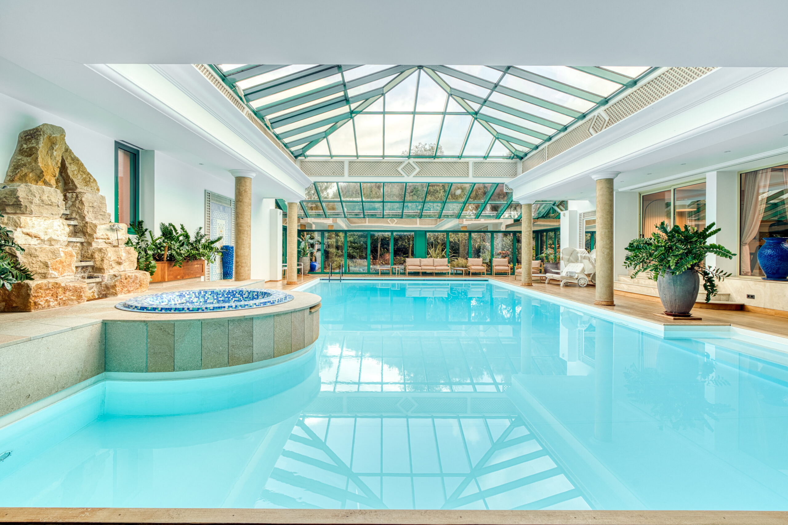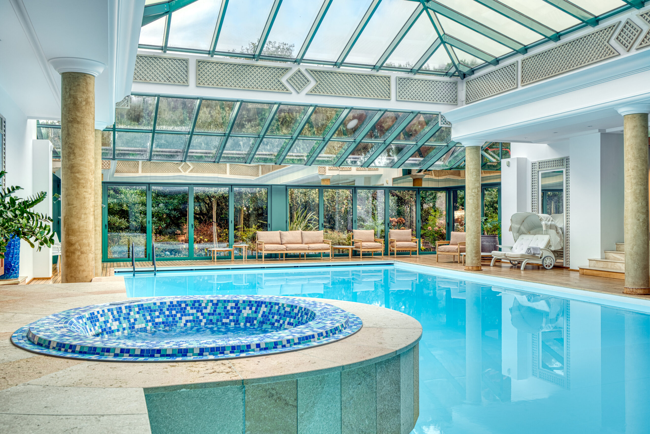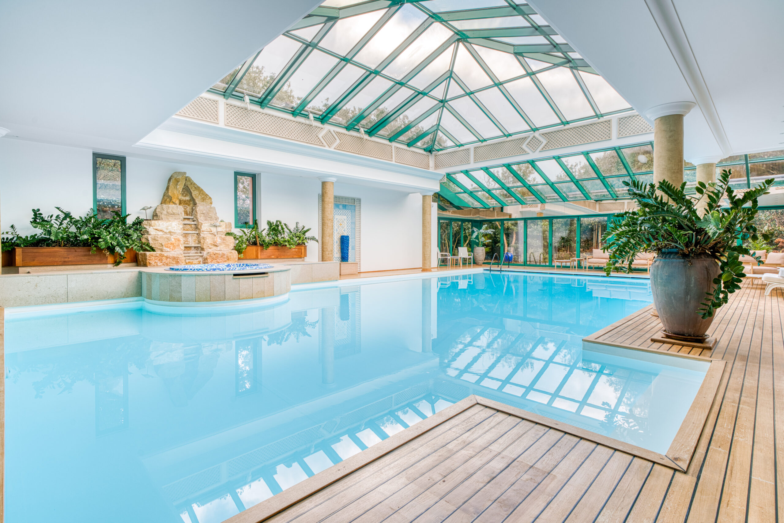 Véritable joyau de la maison, la piscine intérieure chauffée s’impose comme une invitation permanente à la détente et au bien-être. Baignée de lumière naturelle grâce à sa magnifique verrière, elle offre un cadre apaisant où l’eau, la pierre et le bois dialoguent en parfaite harmonie. En toute saison, elle prolonge le plaisir de la baignade dans une atmosphère feutrée. À l’extérieur, les terrasses et jardins, enveloppés par l’air marin, dévoilent un panorama saisissant où le ciel se fond dans l’horizon de l’océan. Un lieu d’exception, à la fois intime et ouvert sur l’infini.